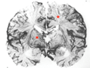 L’artériolosclérose est une maladie des petites artères qui pénètrent dans le cerveau pour le vasculariser (Fig.3). Cette maladie, qui est associée au vieillissement et à l’hypertension artérielle, induit des modifications de la paroi artérielle qui peuvent aboutir à un rétrécissement ou une occlusion de la lumière artérielle ou à une rupture de la paroi. Cette artériopathie peut se compliquer d’infarctus de petite taille (dits lacunaires) (Fig. 4) ou d’hémorragies cérébrales, qui peuvent ou non se manifester par des symptômes neurologiques aigus, en fonction de leur siège et de leur volume.